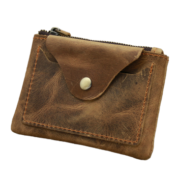 กระเป๋าสตางค์หนังแท้สไตล์วินเทจทำมือสำหรับผู้ชาย กระเป๋าใส่เหรียญหนังวัวแบบบางลำลอง ซิปกันน้ำ ใส่กุญแจและบัตรได้