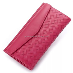 กระเป๋าสตางค์แฟชั่นผู้หญิง ราคาถูก ลายเส้นด้าย ป้องกัน RFID ซับในโพลีเอสเตอร์ ปิดแบบฝาพับ ใส่เหรียญได้